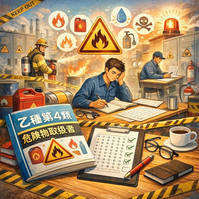 乙4試験とは、「危険物取扱者乙種第4類試験」の略称で、ガソリンや灯油などの引火性液体を扱うために必要な国家資格です。消防法に基づく資格であり、製造業やガソリンスタンド、化学工場など、幅広い現場で求められています。